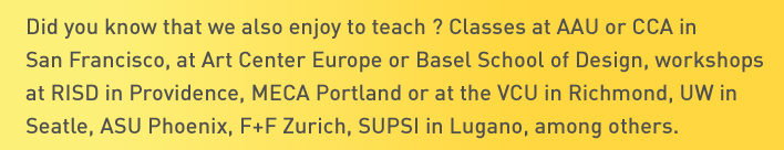 Today, a huge shift is happening in the world of visual communication, challenging graphic studios to adapt themselves and forcing students to play in the interaction world. Within less than 20 years, the screen has become as important as the paper. Intuition and creativity, but also logic and programming are the ingredients for a usable interface.