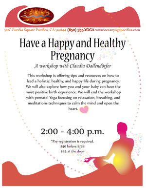 In this workshop we will give tips and resources on how to lead a holistic healthy and happy life during pregnancy. We will also explore how you and your baby can have the most positive birth experience. We will end the workshop with prenatal Yoga focusing on relaxation, breathing, and meditations techniques to calm the mind and open the heart. Time:Saturday, Nov 8, 2008